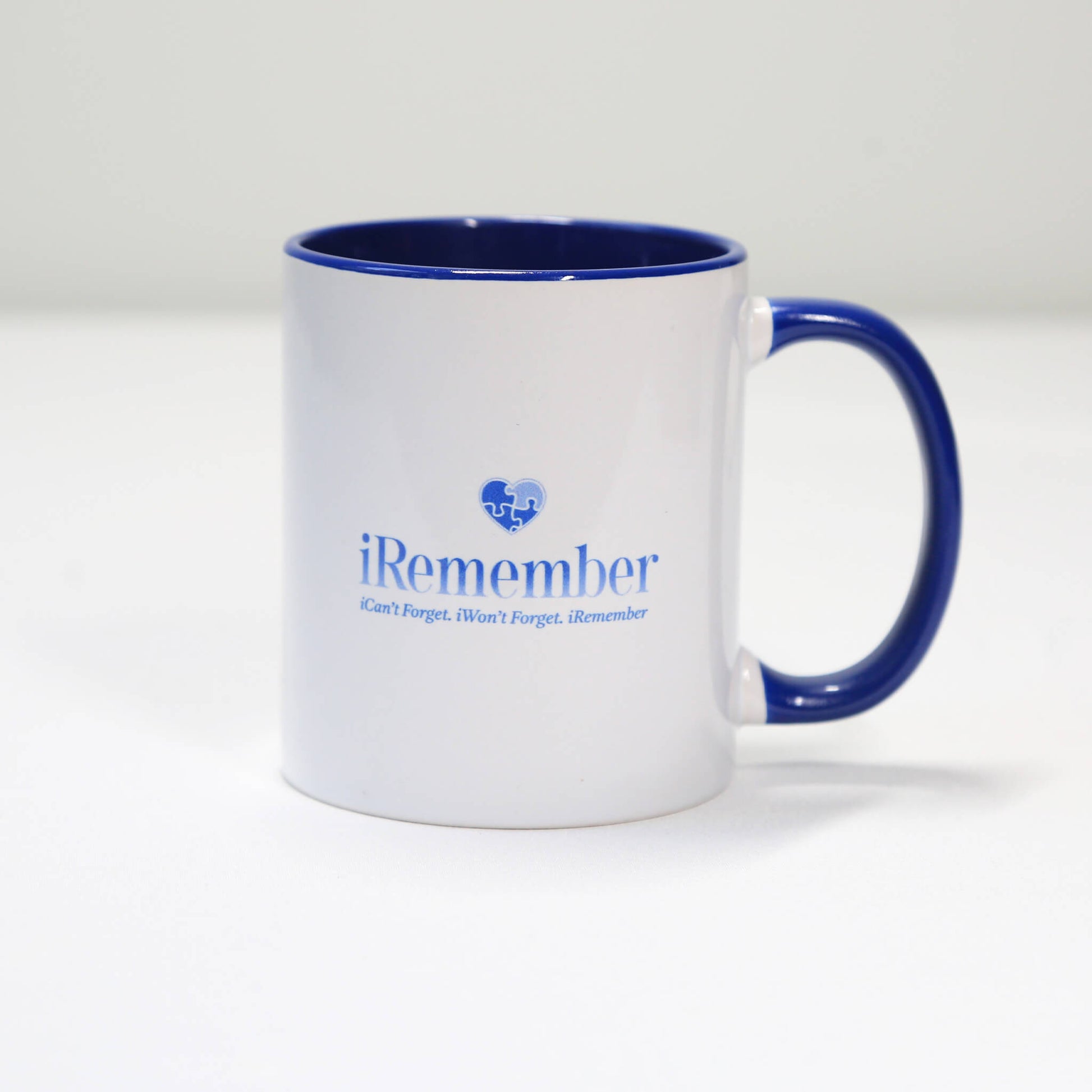 The iRemember ceramic mug contains a high-gloss inner pop of color. It also features the iRemember symbol which incorporates a puzzle in the form of a delicate heart. Each piece of the puzzle represents our loved ones. The empty space in the puzzle represents the soul who is missing from our physical life. It is about preserving their memory because through their memory, we can feel connected.
