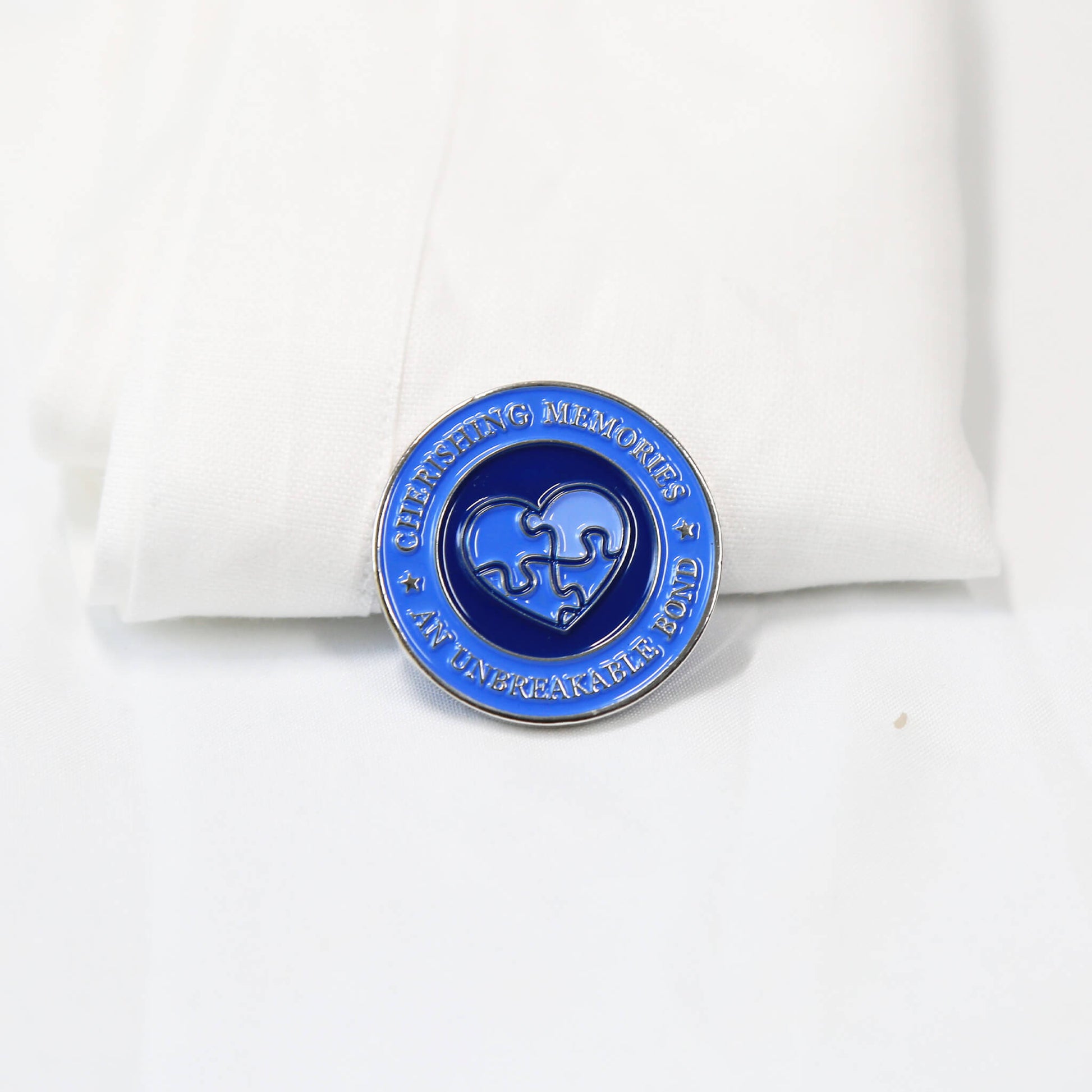 Front side: At the center of the coin is the iconic heart-shaped puzzle. The missing section represent the person who passed away from our physical life. The phrase "CHERISHING MEMORIES. AN UNBREAKABLE BOND," is embossed to convey the fact that death cannot break the bonds of love.
